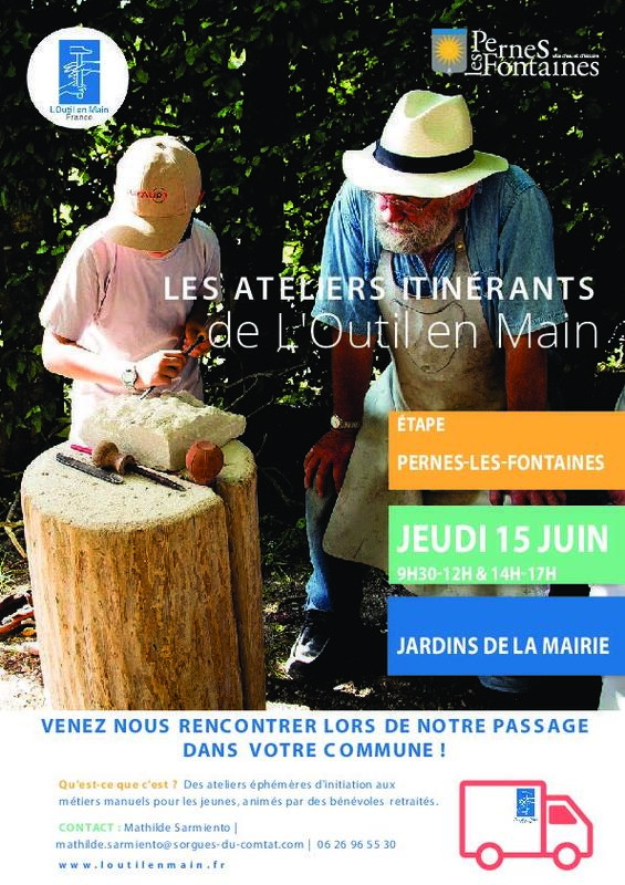 Venez découvrir des Ateliers itinérants dans les Jardins de la Mairie avec l'association Outil en main France en partenariat avec la ville. Ouverture de 10h à 17h