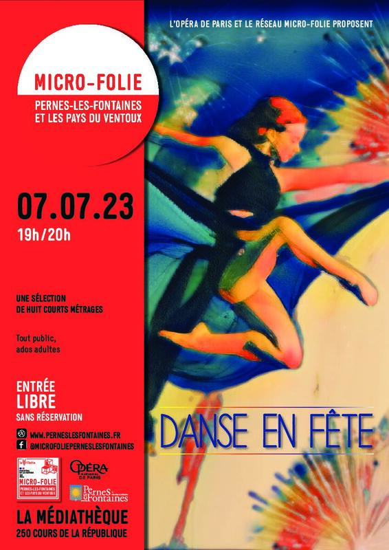Le vendredi 7 juillet à 19h, projection d'une sélection de courts métrages sur le thème de la danse. Salle polyvalente de la médiathèque. Gratuit. Sans réservation. Public ado-adultes.