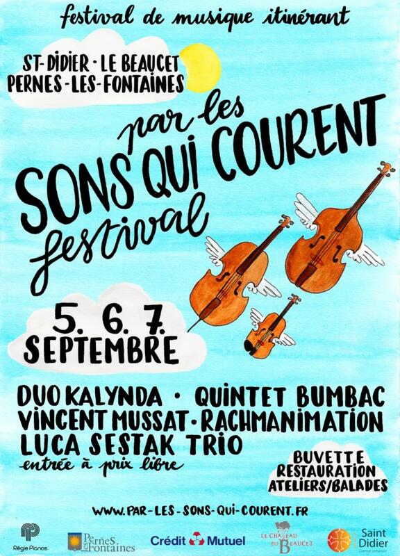 Programme de la soirée : 18h30 présentation des chants préparé pendant l'atelier (16h), 20h Luca Sestak trio ! Sur place, buvette et restauration vous attendent, pour passer une merveilleuse soirée musicale et conviviale ! Toutes les infos du festival sont ici : https://par-les-sons-qui-courent.fr/