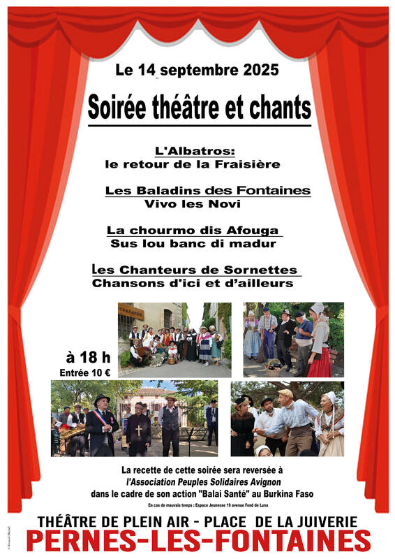 Venez assister à une soirée théâtrale le dimanche 14 septembre à 18h au théâtre de plein air.