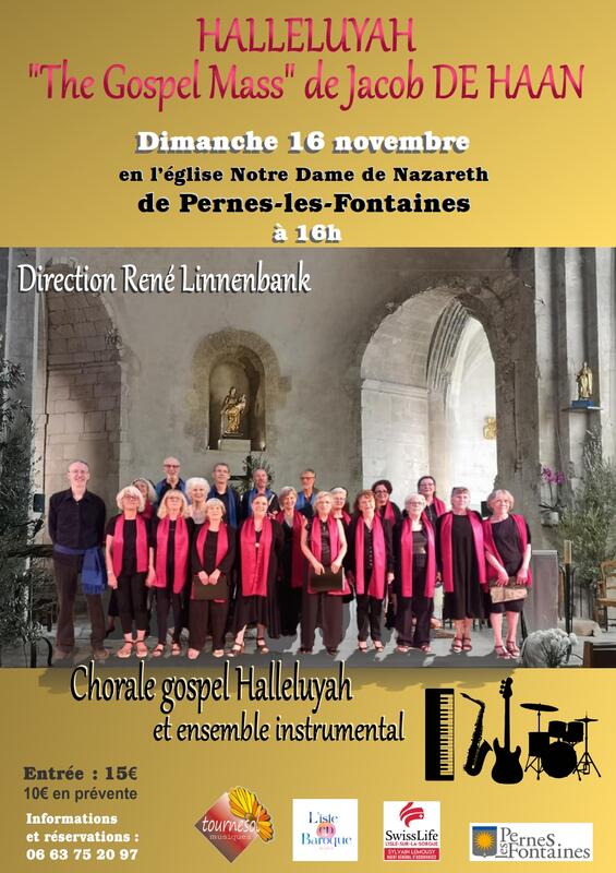 Chorale Gospel et ensemble instrumental de Jacob DE HAAN, le Dimanche 16 Novembre à 16h à la Collégiale Notre-Dame-de-Nazareth, Pernes-les-Fontaines