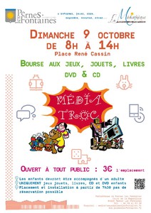 Le MédiaTroc à Pernes les Fontaines ! Retrouvez la bourse aux jouets, jeux, livres avec une nouveauté cette année, l'extention aux CD et DVD.