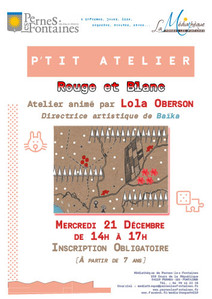Atelier à partir de 7 ans animé par L. Oberson (Directrice artistique de Baïka) à la Médiathèque municipale