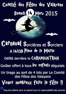 Le Comité des Fêtes des Valayans invite l’ensemble de la population, petits et grands, à se rassembler le samedi 14 mars à partir de 14h30 sur la place de la Mairie. Il est recommandé de venir déguisé. Un goûter sera offert aux enfants déguisés.