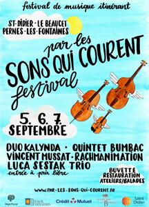 Programme de la soirée : 18h30 présentation des chants préparé pendant l'atelier (16h), 20h Luca Sestak trio ! Sur place, buvette et restauration vous attendent, pour passer une merveilleuse soirée musicale et conviviale ! Toutes les infos du festival sont ici : https://par-les-sons-qui-courent.fr/