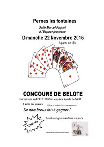 L'association Plumes de Fontaines vous invite à participer à son concours de belote à 14h30 à l'Espace jeunesse municipal.
