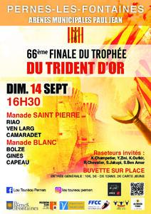 Le club pernois "Lou toureou Pernen" accueil la 66ème finale du Trophée du Trident d'Or aux arènes municipales Paul Jean ! à partir de 16h30 le 14 septembre 2025.