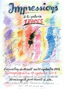 DU 16 août au 30 septembre avec une interruption du 3 au 17 septembre, exposition « Impressions » à la Galerie Traces. Vernissage le 16 août à 18h.