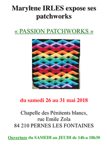 Exposition des œuvres de Mme IRLES Marylène à la Chapelle des Pénitents. Ouverture tous les jours de 14h à 18h30.