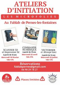 Gratuit. Sur réservation auprès du Fablab au 04 90 29 78 27 / fablabpernes@gmail.com