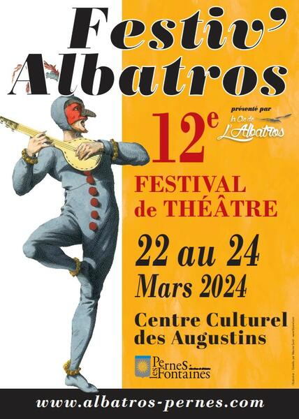 Toute l'équipe de la Compagnie de l'Albatros, troupe de théâtre amateur Pernoise, propose pour sa 12e édition, son festival de théâtre au Centre Culturel des Augustins