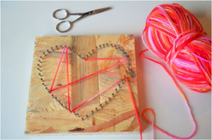 Médiathèque : Tableau à clous et fils