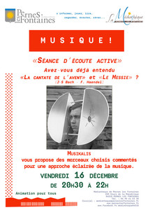 Musikalis vous propose des morceaux choisis, commentés pour une approche éclairée de la musique. Cette animation se déroule à la Médiathèque municipale de 20h30 à 22h.