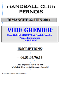 Vide grenier par le « Hand Club Pernois » place Gabriel Moutte et quai de Verdun de 8h à 18h.